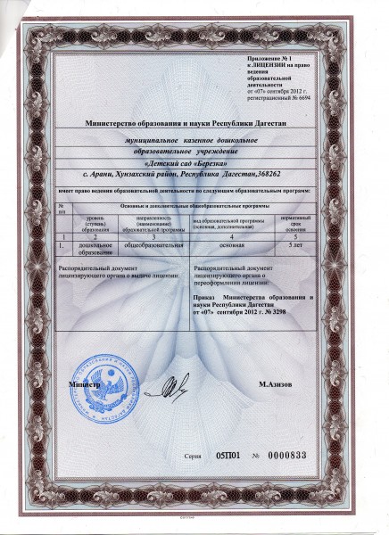 | Полное наименование образовательной организации* | Муниципальное казенное дошкольное образовательное учреждение "Детский сад" "Березка" с.Арани |